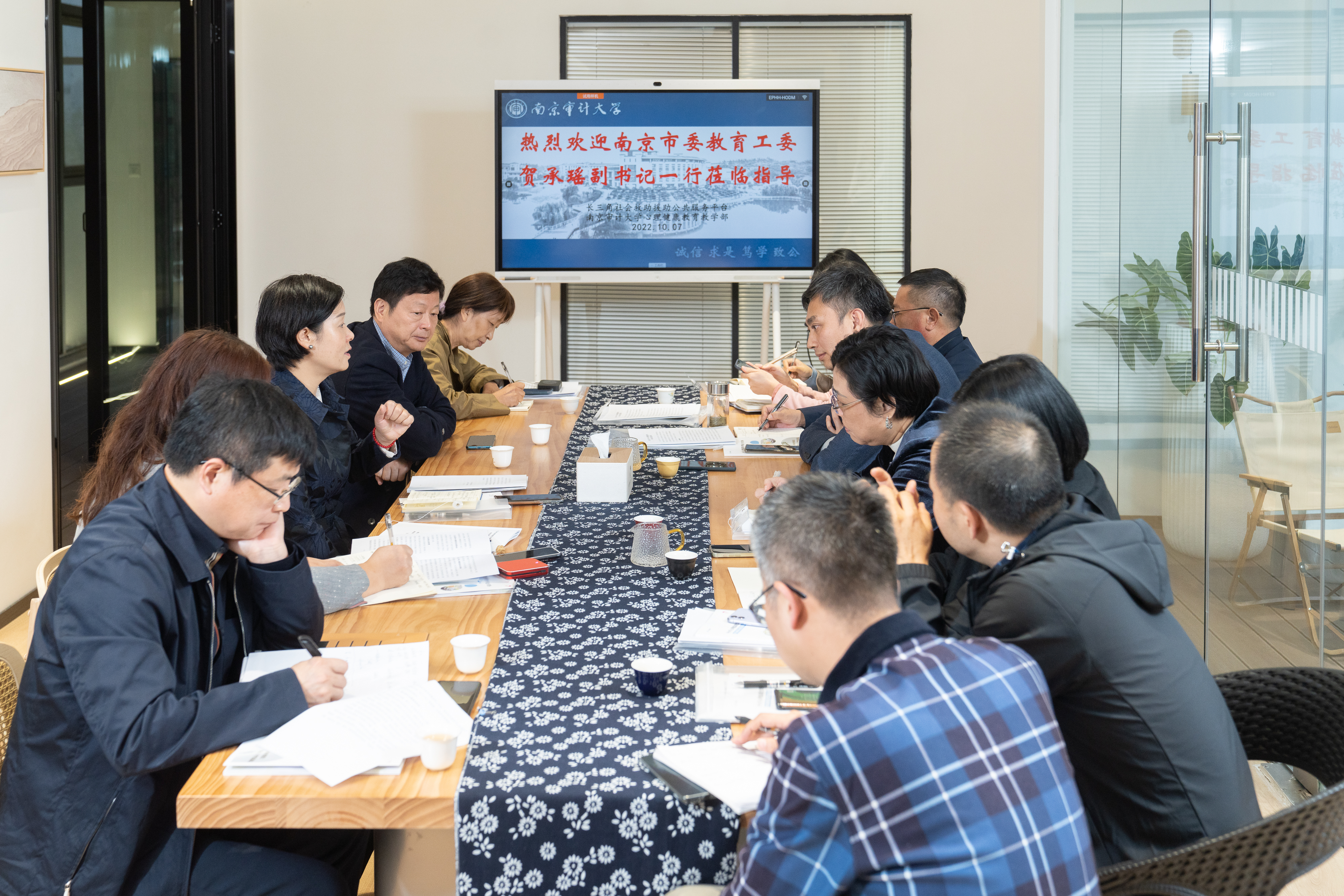 蔡智勇对贺承瑶一行表示热烈欢迎,并陪同参观了心理健康教育教学部打造的心理育人新空间。接着,刘学东介绍了心理健康教育教学部目前师资配备情况,同时汇报了当前南京市心理健康大中小一体化项目的建设情况。