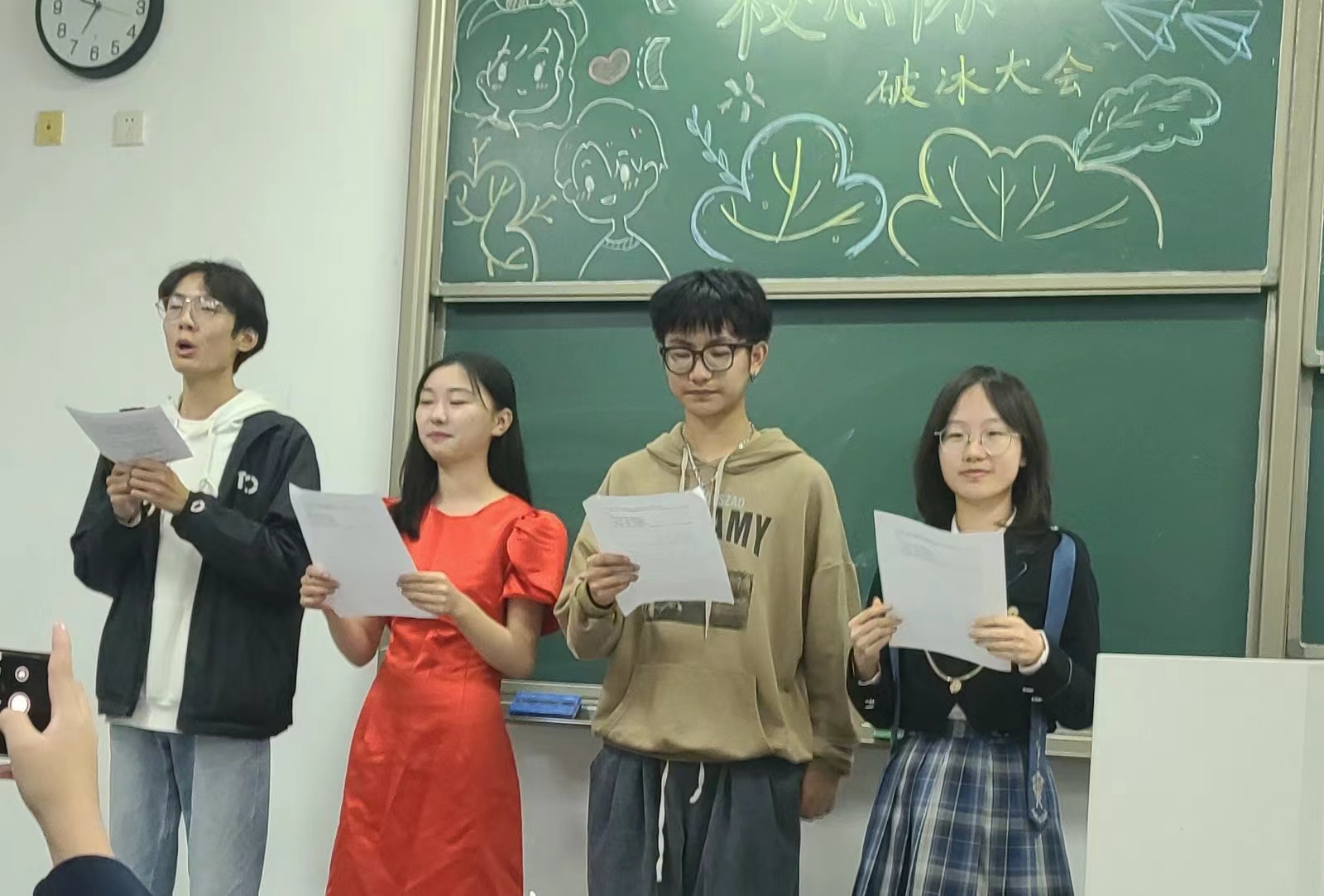 在主持人的热情问候声中,活动徐徐拉开帷幕。精彩纷呈的活动,丰富独特的礼物,精心准备的节目,让同学们沉浸在了一场全视角的盛宴之中。各个部门先后进行了部门内部成员自我介绍,迈出了走向彼此的第一步。紧接着伴随着阵阵欢笑声语,节目表演随之而至。歌曲串烧、诗朗诵、舞蹈……烘托了活动的热闹气氛,掌声不断。穿插其中的国王游戏则为本次破冰大会带来了一抹别样的色彩。于点点闪光灯中,大合唱《想去海边》为本次破冰仪式的表演环节画上了完美的句号。同学们各施所长,让大家认识了不一样的自己。