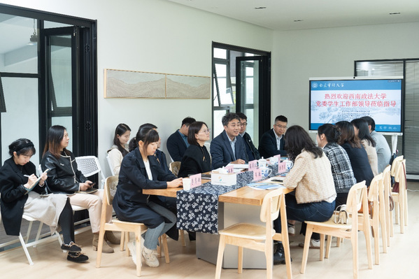 3月15日上午,西南政法大学经济法学院党委副书记姜瑜、人工智能法学院党委副书记潘清滢、经济学院党委副书记杨化、心理危机预防与干预研究中心副主任韦敏、心理健康教育与咨询中心专职咨询师谢明星一行5人到访我校心理健康教育教学部,就心理危机预防与干预体系建设、心理育人机制建设、心理教师队伍建设等议题进行了沟通交流。教学部全体教师参与交流活动。